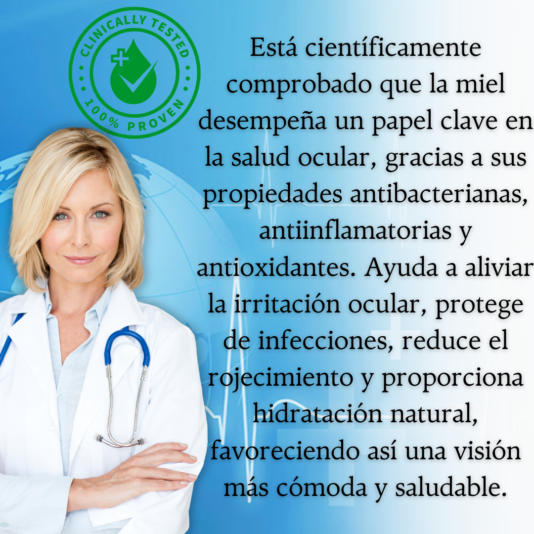 Lubrimiel 🍯✨ llega como la solución natural y efectiva para tus problemas oculares. Estas gotas 💦, científicamente formuladas con los beneficios de la miel 🌿, alivian la irritación, humectan de forma profunda y protegen 🛡️ tus ojos contra infecciones comunes.